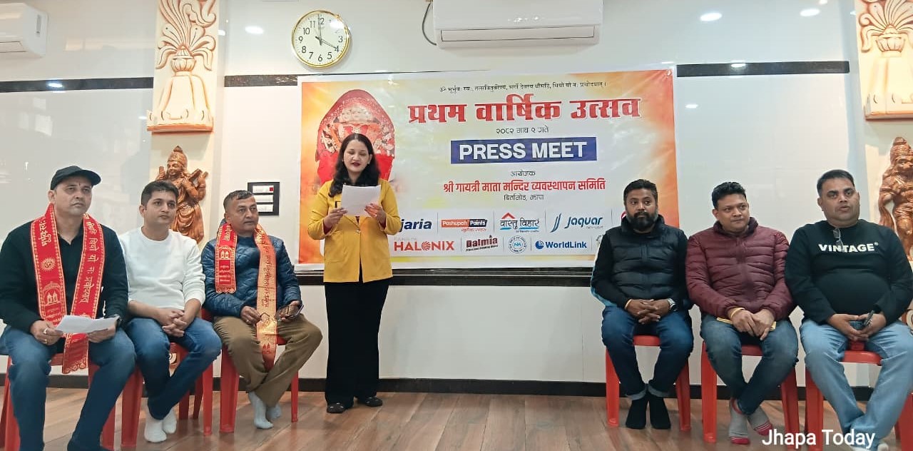 बिर्तामोड, माघ ७ । झापाकै पहिलो बिर्तामोडमा रहेको श्री गायत्री माता मन्दिरको प्रथम वार्षिकोत्सवमा दातालाई सम्मानसहित विशेष कार्यक्रम गरिने भएको छ । मन्दिर व्यवस्थापन समितिले आज मन्दिरपरिसरमा पत्रकार सम्मेलनको आयोजना गरेर माघ ९ गते वार्षिकोत्सव […]