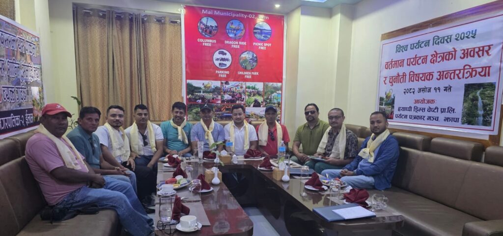 बिर्तामोड, असोज ११ । विश्व पर्यटन दिवस २०२५ को अवसरमा झापाको बिर्तामोडमा ‘वर्तमान पर्यटन क्षेत्रको अवसर र चुनौती’ विषयक अन्तरक्रिया सम्पन्न भएको छ ।