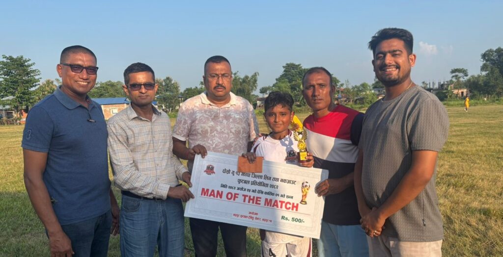 खेलको प्लेयर अफ द म्याच भद्रपुरका ओसिन बस्नेत भए । उनलाई भद्रपुर झापा गोल्डकपका अध्यक्ष दिपेश ढकाल, महासचिव जीवनकुमार श्रेष्ठ, सचिव तीर्थ ढकाल, आयोजक अध्यक्ष मित्र बस्नेत, सचिव विवेक चम्लागाईंले नगद ५०० र ट्रफी प्रदान गरे ।