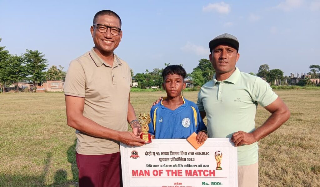 खेलको प्लेयर अफ द म्याच धाइजन चारआलीका दिवस उराउ भए । उनलाई भद्रपुरका निर्वतमान नगरप्रमुख जीवनकुमार श्रेष्ठ र आयोजक अध्यक्ष मित्र बस्नेतले नगद ५०० र ट्रफी प्रदान गरे ।