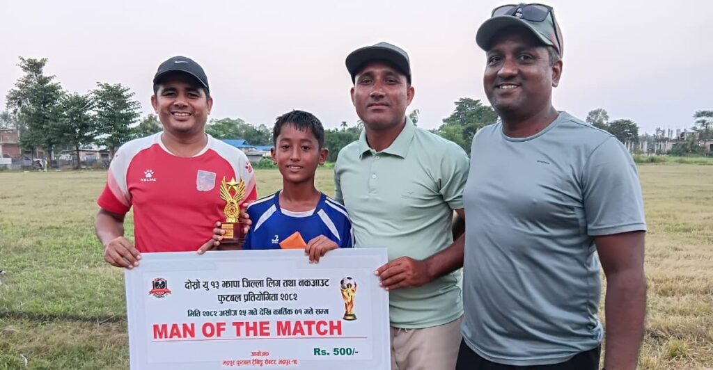 त्यस्तै, हिमालीका लागि ३७ औँ मिनेटमा पुनम पौडेलले सान्त्वाना गोल फर्काएका थिए । खेलको प्लेयर अफ द म्याच सैनिकका निशान श्रेष्ठ भए । उनलाई राष्ट्रिय फुटबल टिमका पूर्वप्रशिक्षक प्रवेश कटवाल, आयोजक अध्यक्ष मित्र बस्नेत र स्वस्तिक ट्राभल्सका सञ्चालक बिक्की जैसवालले नगद ५०० र ट्रफी प्रदान गरे ।