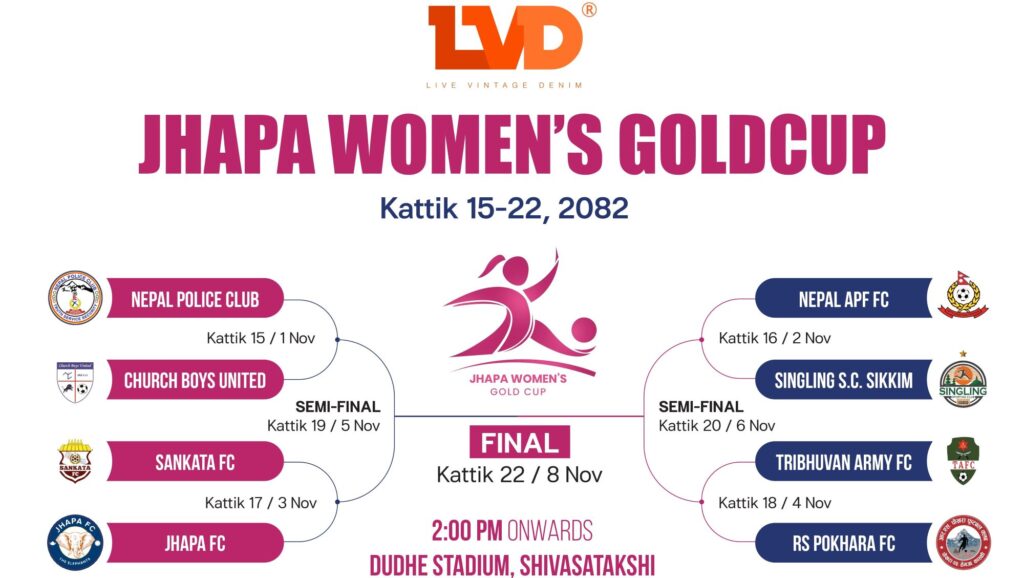 झापा महिला गोल्डकपको खेल तालिका सार्वजनिक