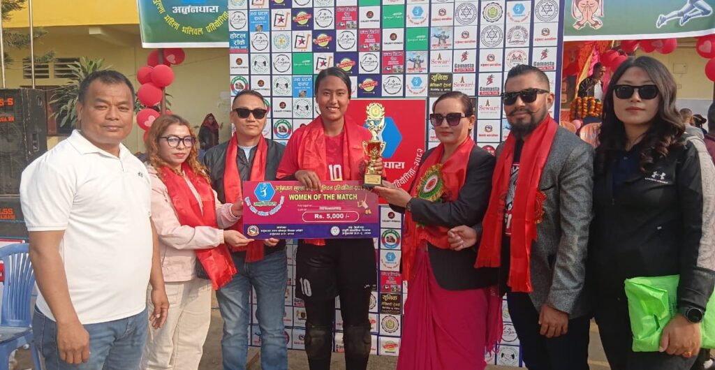 उनलाई प्रमुख अतिथि अर्जुनधारा नगरकी उपप्रमुख खड्गमाया पराजुली, नगद सौजन्यकर्ता सीता ढकाललगायतले नगद पाँच हजार र ट्रफी प्रदान गरे ।