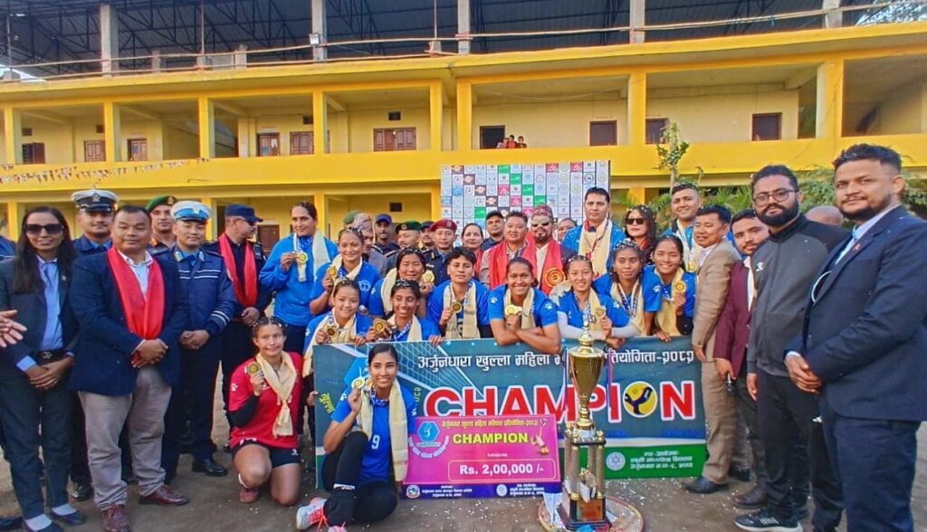 बिर्तामोड, मंसिर २१ । नेपाल पुलिस क्लब झापामा सम्पन्न अर्जुनधारा खुला महिला भलिबल प्रतियोगिताको च्याम्पियन बनेको छ । आज भएको फाइनल प्रतिस्पर्धामा अर्को विभागीय टोली सशस्त्र प्रहरीको एपिएफ क्लबलाई हराउँदै पुलिसले उपाधि उचालेको हो ।