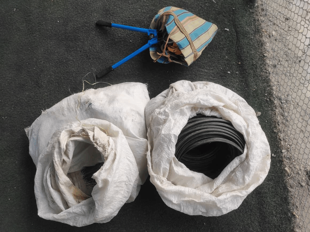 सो तार अन्दाजी एक लाख मूल्य बराबरको रहेको प्रहरीले जनाएको छ । नेपाल टेलिकमको २ बोरा तार, एउटा तार कटर र एउटा ग्लेन्डर मेसिन फेला परेको थियो ।