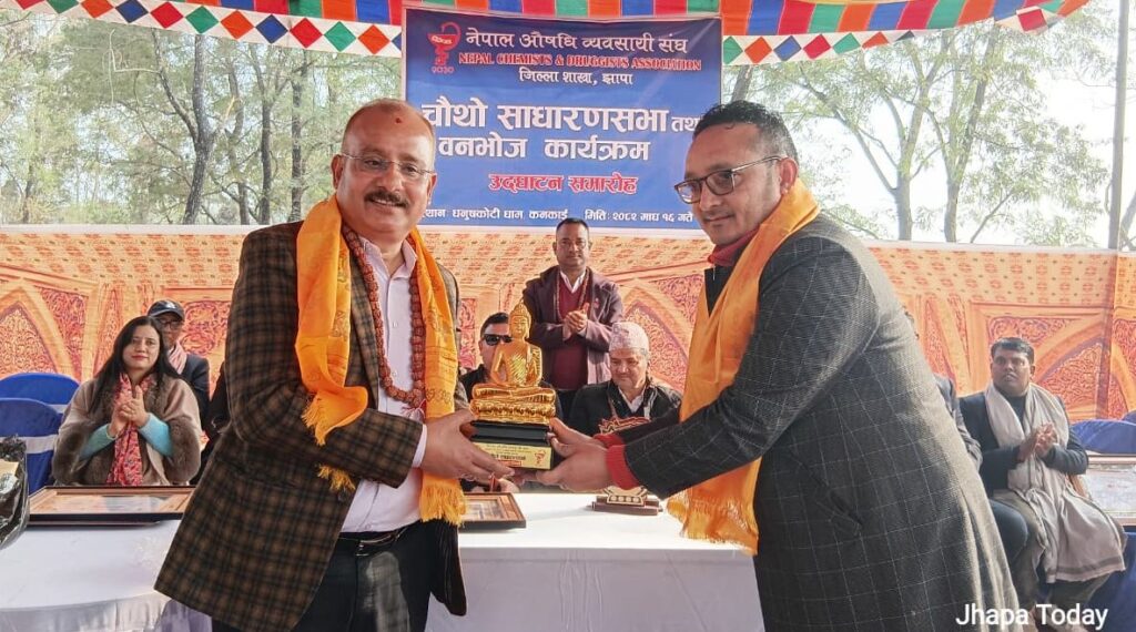 बिर्तामोड, माघ १६ । नेपाल औषधि व्यवसायी संघ (एनसिडिए) झापाले चौथो अधिवेशनको अवसरमा १० जना अग्रज व्यवसायीसहति १४ जनालाई सम्मान गरेको छ ।