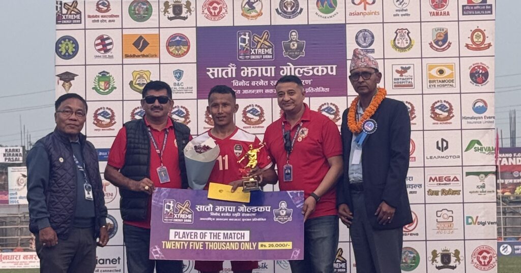 खेलको प्लेयर अफ द म्याच विजेता टिम आर्मीका नविन लामा घोषित भए । उनले नगद २५ हजार रुपैयाँ पुरस्कार पाए ।