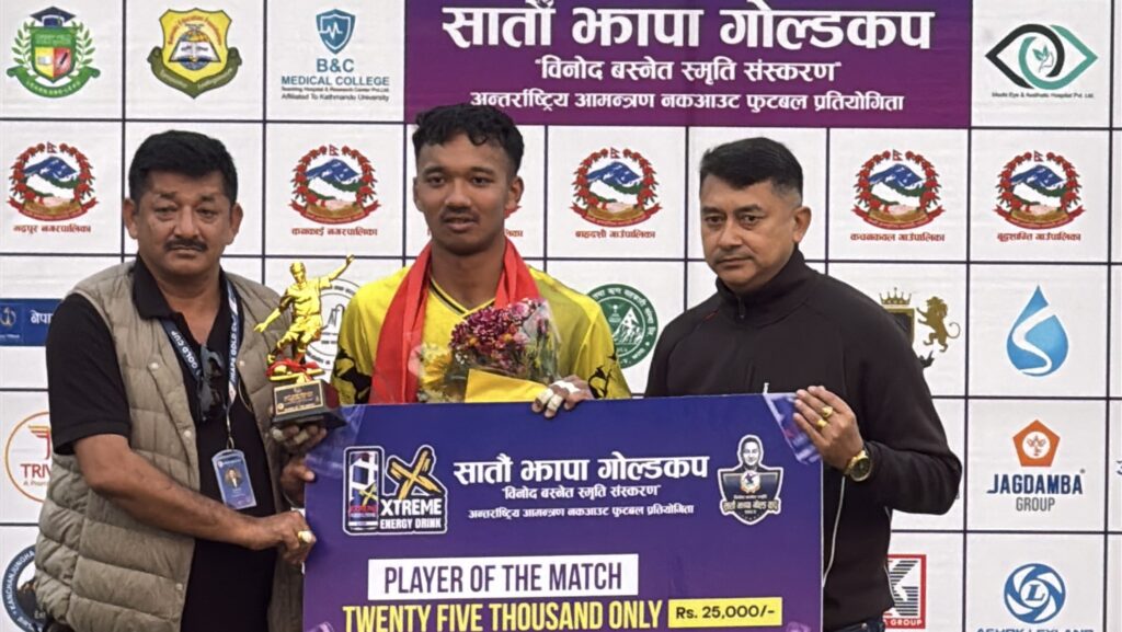 खेलको प्लेयर अफ द म्याच विजेता टिम झापा–११ का गोलकिपर विवेक मगर घोषित भए । उनले नगद २५ हजार रुपैयाँ पुरस्कार पाए । भोलि मंगलबारको दोस्रो क्वार्टर फाइनल खेल त्रिभुवन आर्मी फुटबल क्लब र लालीगुराँस एसोसिएसन नेपाल पोखराबीच हुनेछ ।