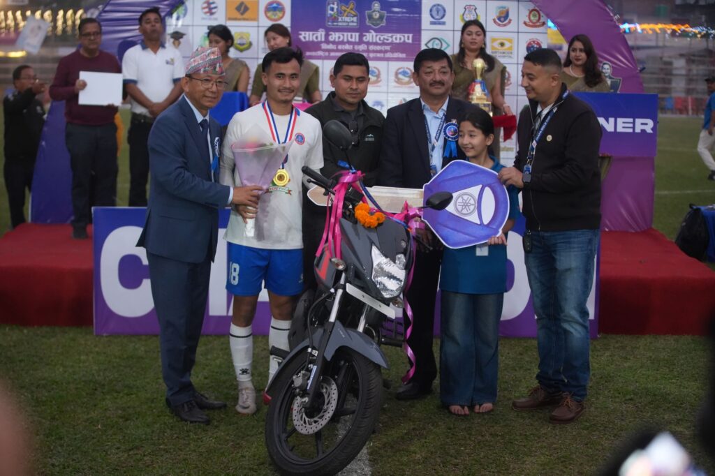 प्रतियोगिताको सर्वोत्कृष्ट खेलाडी मछिन्द्रका पेमा तामाङ भए । उनले यामाहा कम्पनीको एकथान मोटरसाइकल पाए । बेष्ट गोलकिपर मछिन्द्रका विशाल श्रेष्ठ, बेष्ट कोच मछिन्द्रकै प्रवेश कटवाल, हाई स्कोरर मछिन्द्रका जोनाथन जोरिल्ला भए । उनीहरुले जनही ३५ हजार रुपैयाँ र ट्रफी पाए ।