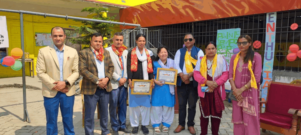 उत्कृष्ट कार्य गरेको भन्दै प्राइमरी तहकी नेहा राजवंशी र प्रि–प्राइमरी तहकी भद्रशिला राईलाई नगदसहित सम्मान गरिएको हो ।