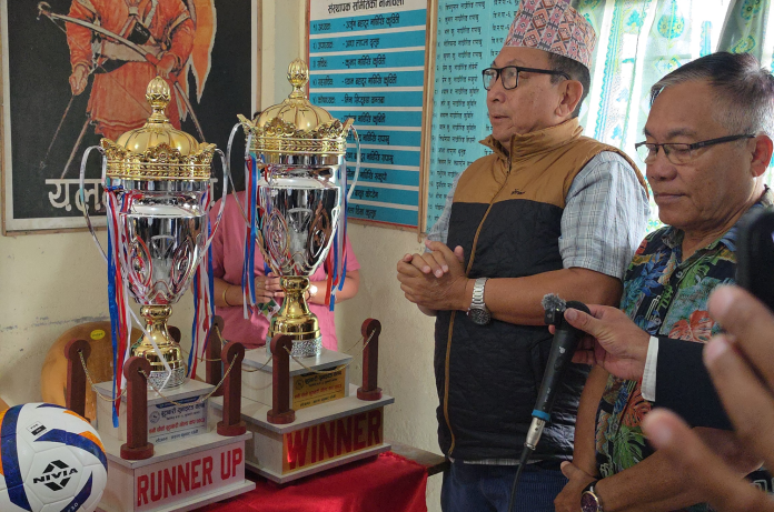 पत्रकार सम्मेलनमा प्रतियोगिताको ट्रफी समेत सार्वजनिक गरिएको थियो । कार्यक्रमका प्रमुख अतिथि बिर्तामोड–६ का वडाअध्यक्ष सूर्यप्रसाद कन्दङ्वा र झापा जिल्ला फुटबल संघका अध्यक्ष भगिरथ आले मामाले संयुक्त रूपमा ट्रफी सार्वजनिक गरेका थिए ।