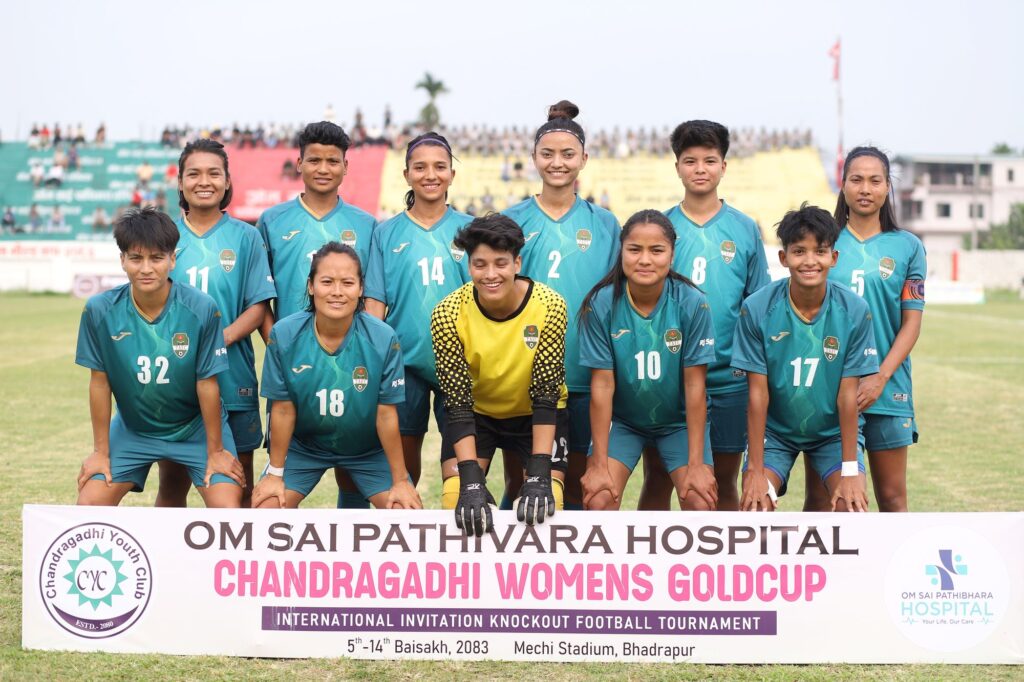 भद्रपुर, बैशाख ५ । भद्रपुरमा आज शनिबारदेखि सुरु भएको नेपालकै सर्वाधिक राशिको प्रथम ‘ओम साई पाथिभरा हस्पिटल चन्द्रगढी महिला गोल्डकप’ फुटबल प्रतियोगिताको उद्घाटन खेलबाट त्रिभुवन आर्मी फुटबल क्लब सेमिफाइनलमा प्रवेश गरेको छ ।