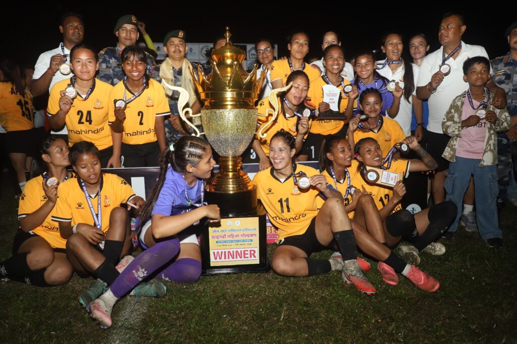 भद्रपुर, बैशाख १४ । झापाको भद्रपुरमा आयोजित ओम साई पथिभरा हस्पिटल चन्द्रगढी महिला गोल्डकपको उपाधि सशस्त्र प्रहरीको एपिएफ फुटबल क्लबले हात पारेको छ । अर्काे विभागीय क्लब त्रिभुवन आर्मी फुटबल क्लबलाई १–० गोल अन्तरले हराउँदै सशस्त्रले उपाधि हात पारेको हो ।